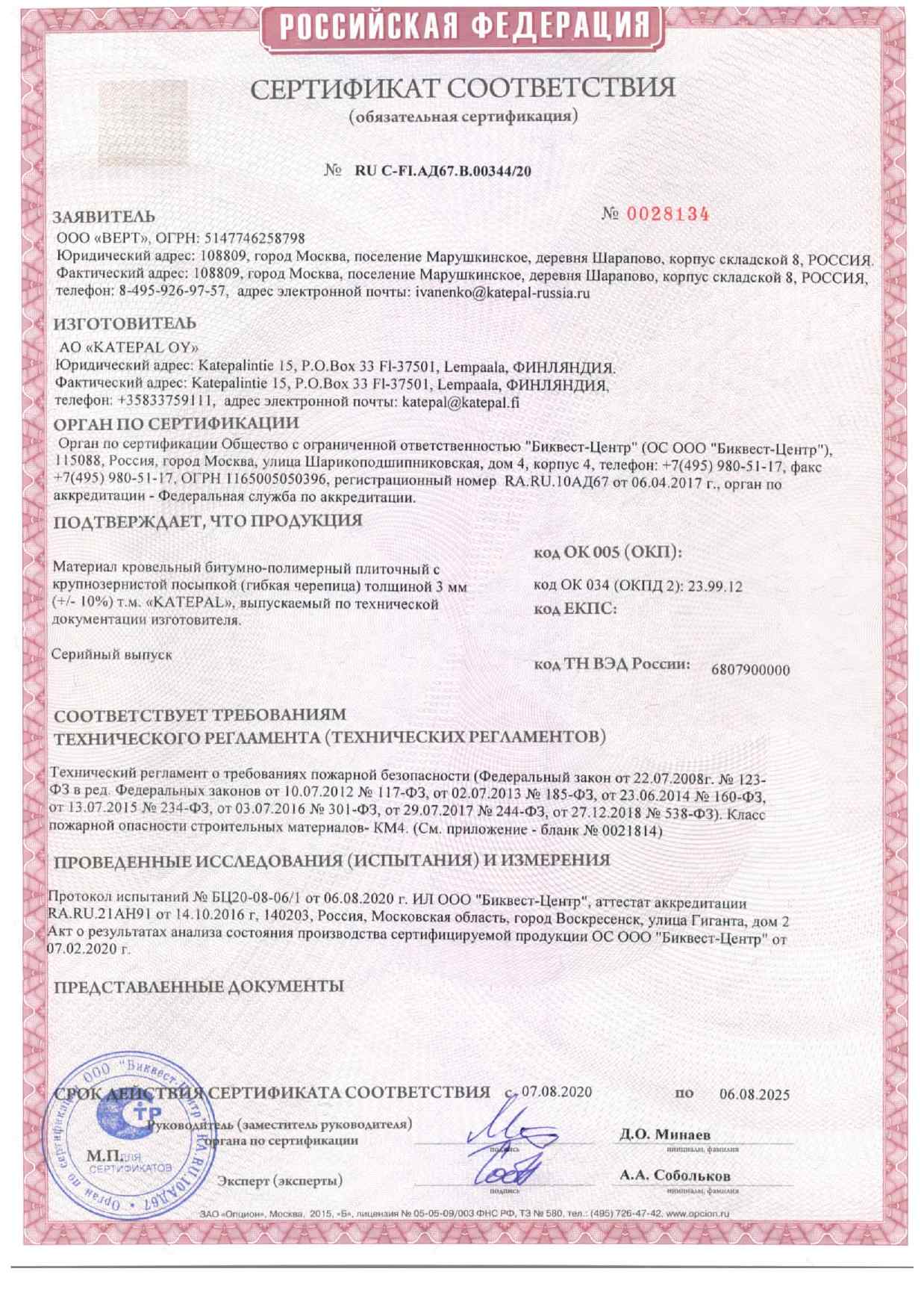 Сертификаты гибкой черепицы